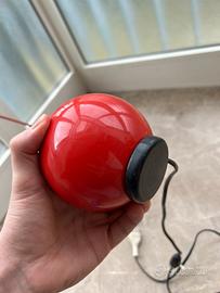 La base sferica poggia su un supporto che ne regola l'inclinazione, questo a sua volta rimane fissato grazie a una calamita per cui è regolabile su tutta la parte semisferica. In condizioni molto buone, monta lampadine alogene a due pin piccole. Dimensioni altezza circa 40 cm, base sferica diametro circa 10 cm.