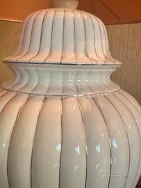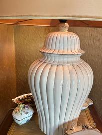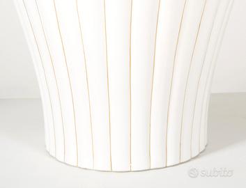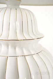 Lampada Tommaso Barbi Anni 70’. Lampada da tavolo del designer italiano Tommaso Barbi in ceramica con finiture dorate dipinte a mano, anni '70. Lampada funzionale, in ottime condizioni. DIMENSIONI: L.35CM / P.35CM / H.50CM MATERIALE: CERAMICA COLORE: BIANCO