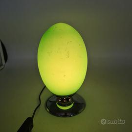 Lampada design a forma di uovo in vetro verde con dei graffi o macchie sinceramente non abbiamo capito.