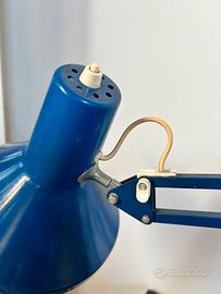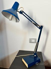Lampada d’epoca da scrivania, credo anni 80, completa di base, perfettamente funzionante. Buone condizioni, come da foto, di un bellissimo blu intenso. Non riporta marchi specifici.