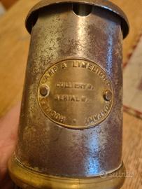 Lampada di sicurezza da minatore, nota anche come lampada Davy (dal nome del suo inventore Sir Humphry Davy). Questo oggetto non era solo una fonte di luce, ma un vero e proprio salvavita per chi lavorava nel sottosuolo. Struttura e Materiali: Corpo in Ottone e Acciaio: La base e la gabbia protettiva sono tipicamente in ottone (che non produce scintille se urtato, mentre la parte superiore (il "camino") è in acciaio/ferro zincato, come dimostrano i segni di ossidazione leggeri.Vetro di Protezione: Il cilindro centrale in vetro spesso proteggeva la fiamma dal vento e dagli urti, ma permetteva alla luce di diffondersi a 360 gradi. Gabbia Metallica: Le barre verticali proteggono il vetro da rotture accidentali durante il duro lavoro in miniera, per sicurezza indicava una fiamma blu o "allungata", se c'era presenza di metano; se si spegneva, segnalava carenza di ossigeno. Dettagli targhetta ovale in ottone:Scritte legate a compagnie britanniche, con diciture come "Colliery" (miniera di carbone) e "Lamp & Limelight". Queste lampate erano numerate perché ogni minatore era responsabile della propria. Il fondo è realizzato in ottone massiccio, scelto non solo per la resistenza alla corrosione, ma soprattutto perché è un materiale anti-scintilla. In caso di caduta o urto contro una roccia, non produce scintille che potrebbero innescare esplosioni di gas metano. La lampada appare in buone condizioni estetiche. La patina sull'ottone e la ruggine sulla parte superiore le conferiscono un fascino "vissuto" molto apprezzato dai collezionisti. Consiglio: Se decidi di pulirla, usa prodotti non abrasivi per l'ottone e evita di rimuovere completamente la patina dal ferro se vuoi preservarne il valore storico e l'autenticità. €80 – €120: Prezzo tipico in negozi di antiquariato o per esemplari in ottime condizioni, completi di gancio superiore e senza ammaccature sul metallo