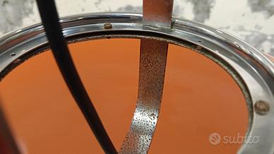 La lampada non è stata restaurata, è interamente originale. Presenta alcuni segni di usura come piccoli graffi e altri segni del tempo, come una piccola crepa e punti di ruggine nella parte interna della cromatura (come da foto)