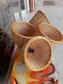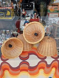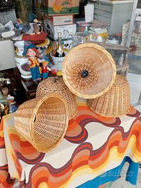 lampadari in vimini sono quattro pezzi funzionanti da esterno posso venderli a coppia numero due pezzi. vendo al pezzo 40€. le misure in altezza sono 20 cm. la base del lampadario misura 28 x 28 cm. posso spedire prezzo trattabile. ritiro in zona.