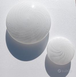 Vendo coppia di lampadari/applique/plafoniere in vetro di Murano in ottime condizioni e funzionanti, 1 punto luce. La grande è diametro 53 cm, quella piccola 30 cm. Prezzo totale