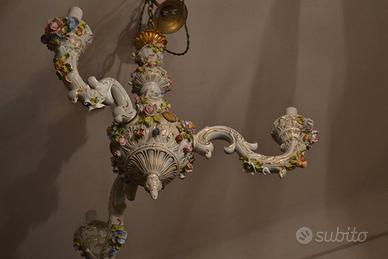 Parole chiave aggiuntive (non già presenti nel testo): sospensione ceramica, lampadario porcellana vintage, éclairage porcelaine, vintage chandelier, suspension italienne, decorazione d'interni, luce rétro, arredamento shabby chic, plafonnier ancien, cerámica decorativa, Antico, antica, antique, vintage, antiquariato, antichità, antiquario, old, lamp, chandelier