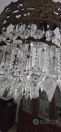 Lampadario Art Déco/Gotico con cristalli, con una robusta struttura in metallo con pendenti in cristallo di vetro. Questo lampadario unisce la sobrietà del metallo alla brillantezza del cristallo, creando un'atmosfera misteriosa e affascinante, perfetta per arredare spazi con un tocco di classe e rafinatezza. Ideale per chi ama lo stile gotico o Art Déco.
