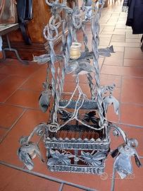 Lampadario antico fine '800 altezza cm 110, tutto in ferro battuto, base cm 23x 23x 23, cinque porta lampade, ritiro milano zona san siro