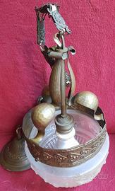 lampadario decò in ferro battuto e vetro opalino
