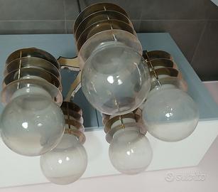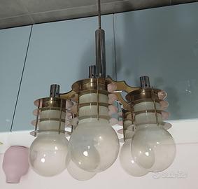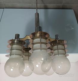Lampadario Design anni 70 Vetro Opalino e Metallo