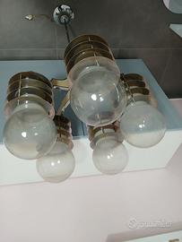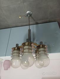 Lampadario Design anni 70 Vetro Opalino Metallo