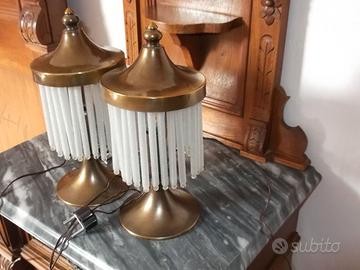 Lampadario con n. 2 abat- jour in ottone bronzato con pendenti in vetro -si presume fabbricato negli anni 50- manca qualche pendente di vetro