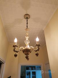 Lampadario in ceramica capodimonte con rifiniture in oro zecchino. In ottime condizioni e nessuna rottura