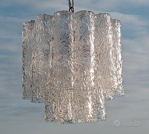 Vendo lampadario in vetro di Murano stile Venini in ottime condizioni e funzionante, 2 punti luce. Diametro 30 cm, altezza 33 cm, con filo 80 cm regolabili