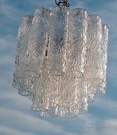 Vendo lampadario in vetro di Murano stile Venini in ottime condizioni e funzionante, 2 punti luce. Diametro 30 cm, altezza 33 cm, con filo 80 cm regolabili