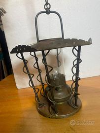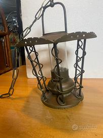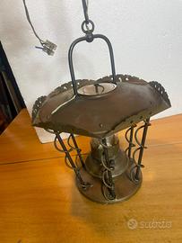 Vecchio lampadario lanterna a sospensione in rame battuto,conservato e perfettamente funzionante,con solo una patina del tempo che ne certifica l’autenticità.