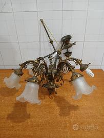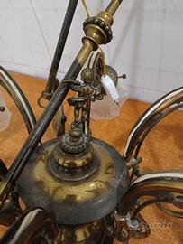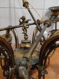 Lampadario Ottone Antico, 6 bracci con 5 coppe in