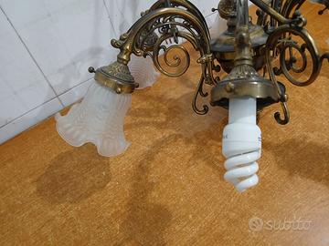ANTICO LAMPADARIO, SEI BRACCI CON CINQUE COPPE VETRO. STRUTTURA CON VARIE LAVORAZIONI IN METALLO TUTTO OTTONE PIENO PARTICOLARE STATUETTA CENTRALE CINQUE COPPE VETRO LAVORATE OPACO (PURTROPPO UNA MI E SCAPPATA DI MANO ROMPENDOSI, COMUNQUE SI TROVANO) CINQUE LAMPADINE A RISPARMIO ENERGETICO, ATTACCO PICCOLO LAMPADARIO USATO IN BUONE CONDIZIONI, COME GIÀ SCRITTO MANCANTE COPPA VETRO E SOLO DI UN GANCIO VEDI ULTIMA FOTO. SONO A DISPOSIZIONE DOPO VOSTRE RICHIESTE ALL' INVIO DI FOTO PIÙ SPECIFICHE -COLORI -DESCRIZIONI -MISURE SEMPLICI o... EVENTUALMENTE PIÙ SPECIFICHE, INVIO DOPO VOSTRE RICHIESTE ATTENZIONE COLORI, DESCRIZIONI E MISURE COMUNQUE FANNO FEDE LE FOTO. NOTA: VENDO L'ARTICOLO/OGGETTO COME DA FOTO, COSI' COME LO VEDETE VISTO E PIACIUTO. PER LA SPEDIZIONE FARO' UN IMBALLO MOLTO ACCURATO MA' NON SONO RESPONSABILE DI UNA EVENTUALE ROTTURA OPPURE PER L' INVIO POSTALE SENZA TRACCIABILITÀ NEL CASO L' ARTICOLO/OGGETTO VADA PERSO, (ALTRIMENTI POTETE FARE RICHIESTA DI SPEDIZIONE DIVERSA).