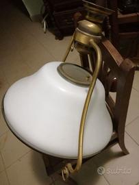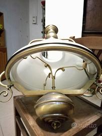 Vendo lampadario ( anno 1980) lampada al neon rotonda struttura color bronzo con cupola in vetro bianco e cavo saliscendi regolabile