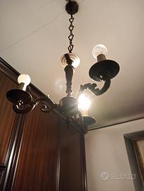 Lampadario sospensione in stile vintage, con finiture in bronzo.