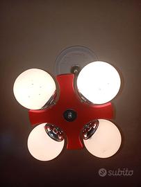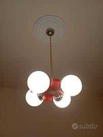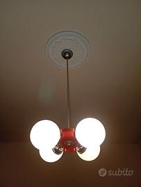 Vendo lampadario anni 60 con il corpo centrale in legno e 4 luci in vetro opalino