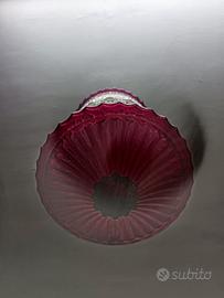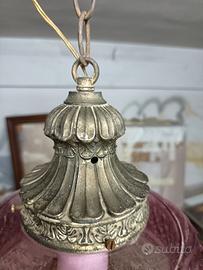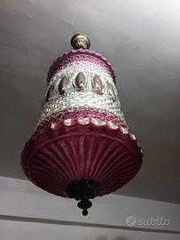 Lanterna vintage anni 50 in ottone e vetro cristallo colorato viola e trasparente finemente lavorato.