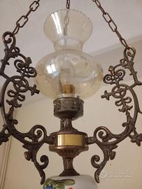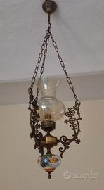 Lampadario vintage con parte in porcellana dipinta