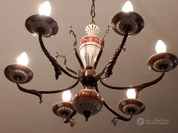 Lampadario ottone e ceramica vintage... disegno modello Gio Ponti... ottime condizioni... disegno e finitura in oro zecchino... euro 135 ribasso a euro 95