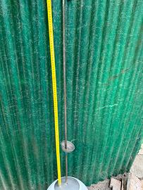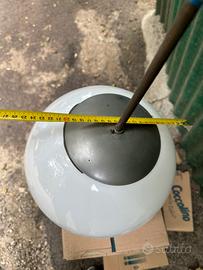 Lampadario vintage composto da una bacchetta metallica lunga un metro e una sfera di vetro bianco opaco senza rotture e/o crepe di circa 25 cm di diametro. Condizioni come da foto