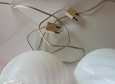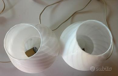 Coppia abat Jour lampade da tavolo design anni ’70 vetro di Murano bianco stile Venini. Dimensioni 21x15 cm.