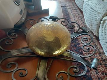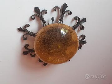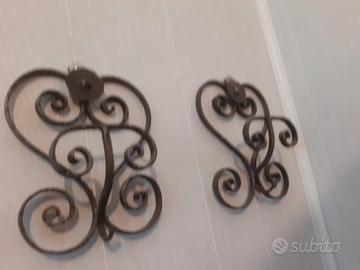 Oggetti vari in ferro battuto dello stesso stile: - Lampada circolare con vetro giallo - 20 euro - nr 2 applique porta lampadine - 15 euro/cad - nr 2 ganci porta abito in ferro battuto - 10 euro/cad 50 euro tutti insieme