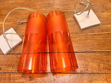 Due lampade a sospensione modello Easy della Kartell. Disegnate da Ferruccio Laviani. Arancioni, in perfetto stato.