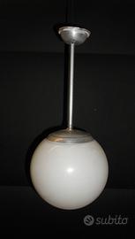 numero due lampade da soffitto in vetro soffiato opalino da cm. 22 di diametro - sostegno con asta in alluminio da cm. 50