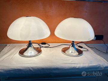 Coppia Lampade Toledo Luigi Massoni per Harveiluce Guzzini vintage. Un diffusore leggermente piegato dal calore in alto (visibile in foto). Dimensioni: 42 per 45. Vendo al miglior offerente.