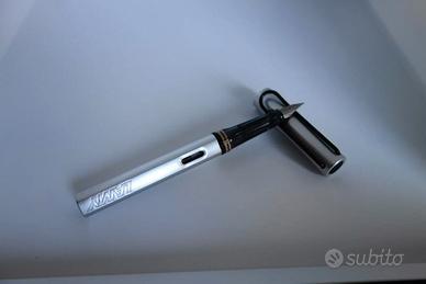 sistema di caricamento : converter - pennino : Lamy acciaio con punta M - sezione : plastica traslucida fumé - fusto : alluminio con due aperture laterali di forma ovale vicino alla cima, anello in plastica nero sulla cima e scritta "Lamy" sul fondo - fondello : piatto in plastica nera - cappuccio : alluminio, chiusura ad incastro, testina piatta in plastica nera - clip : nera in filo di ottone a forma di U - condizioni dell' oggetto : nuovo con scatola - dimensioni della stilografica : diametro cm. 1,5 lunghezza da chiusa cm. 14,2