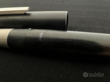 LAMY STILOGRAFICA 2000 NUOVA. LA PENNA FUNZIONA A PISTONE E HA LE RIFINITURE SATINATE COME LA RESINSA DEL CORPO E DEL CAPPUCCIO. IL PENNINO HA PUNTA MEDIA