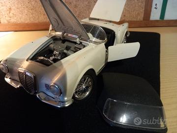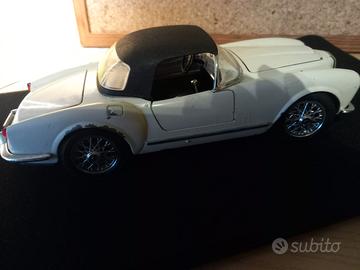 Modello in metallo di Lancia Aurelia 24 Spider del 1955, scala 1:18, marca Burago. Colore bianco crema, con portiere apribili, ruote anteriori sterzanti, alloggiamento motore anteriore apribile cofano posteriore apribile. In discreto stato come da foto (alcune parti di verniciatura scrostate). Possibilità di ritiro anche di persona a Napoli zona Carlo III°. Si precisa, onde evitare fraintendimenti, I’ articolo è USATO anche se in buone condizioni, per tale motivo non vengono venduti a prezzi (molto più alti e verificabili in rete) da modelli da collezione perfetti e nuovi. È normale aspettarsi qualche piccolo dettaglio (mancanza di un tergicristallo oppure uno specchietto retrovisore, qualche imperfezione nella carrozzeria ecc..) Per evitare problemi sono state fatte accurate foto da cui è possibile vedere lo stato dell’articolo. Qualche difformità è segnalata anche nella descrizione. Guardate BENE le foto e poi dichiarate il Vs, interesse. Grazie