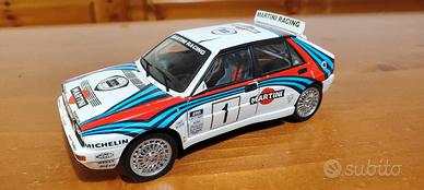 Lancia Delta HF integrale evoluzione marca Ricko in scala 1:18 in ottime condizioni ( vedi foto ) con ruote sterzanti , 4 porte , cofano e bagagliaio apribili . Dettagliata esternamente e negli interni . Pezzo da collezione !