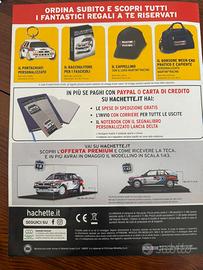IL MODELLINO, COME DALLE IMMAGINI, DA ASSEMBLARE ; TUTTI I COMPONENTI SONO ANCORA IMBALLATI E NUMERATI IN BASE AI FASCICOLI CONSEGNA ANCHE A MANO PREVIO ACCORDI LANCIA DELTA INTEGRALE MARTINI HACHETTE - HF INTEGRALE 16 V DEL 1991 IN LIVREA MARTINI RACING - NELLA VENDITA SONO COMPRESI - N. 100 FASCICOLI - N. 100 CONFEZIONI SEPARATE CON TUTTI PARTICOLARI NECESSARI AL MONTAGGIO COMPLETO DEL MODELLINO - N. 2 RACCOGLITORI PER I FASCICOLI VEDI FOTO IN SCALA 1:8 - DIMENSIONI MODELLO : 48 x 22 x 17 cm PILOTA MIKI BIASON USCITE N. 100 - È la più amata delle auto da rally... Una leggenda che non finisce mai di entusiasmare tutti gli appassionati di automobilismo. Sei Campionati mondiali Rally vinti dal 1987 al 1992, una straordinaria serie di vittorie nelle grandi classiche, dal Rally di Montecarlo al massacrante Safari. La Lancia Delta è stata l’incontrastata regina dei rally, ai vertici delle competizioni più prestigiose di sempre. Goditi la costruzione passo a passo di questa perfetta riproduzione della Lancia Delta HF Integrale in scala 1:8, pilotata dal pluricampione del Mondo Miki Biasion. HF Integrale 16V del 1991 in livrea Martini®Racing! Carrozzeria in metallo Die Cast con decal, profili e appendici aerodinamiche identiche al modello originale. Motore e parti meccaniche totalmente ispezionabili, abitacolo perfettamente riprodotto: sedili ergonomici, roll-bar, cruscotto completo di strumentazioni di bordo del pilota e del navigatore. E in più sorprendenti effetti sonori e luminosi: motore, clacson, luci, stop, per il massimo realismo! Dimensioni modello: 48 x 22 x 17 cm