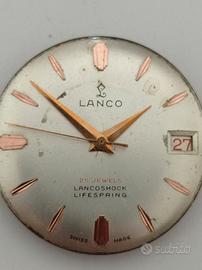 Lanco vintage Cal. 1160 carica manuale Non funzionante (parte e gira per pochi minuti poi si ferma, vedi secondi e bilanciere) Come da foto con quadrante mm 28.5 Per restauro ricambi riparazione collezione.