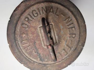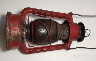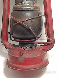 Lanterna vintage da collezione Feuerhand. Funziona a cherosene ed è in metallo colore rosso, il diffusore è in vetro. In altezza misura 25 cm. La base ha un diametro di 11 cm. L'ingombro in larghezza è di 15 cm. Usata, da pulire. Con le foto ho cercato di evidenziare ogni aspetto della lampada.