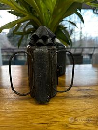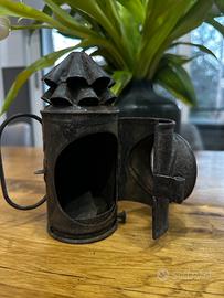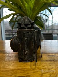 Questa è una lanterna ferroviaria d'epoca, conosciuta anche come lanterna a occhio di bue, risalente all'inizio del Novecento.