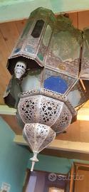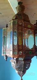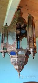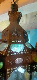 LANTERNA ARABA VINTAGE. LAVORAZIONE ARTIGIANALE LAMIERA-VETRO.OTTIME FINITURE. PER CORTILI,INGRESSI SALOTTI...ARREDAMENTO. ALTEZZA 70 CM.