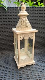 Lanterna portacandele in metallo e vetro, altezza 40cm.