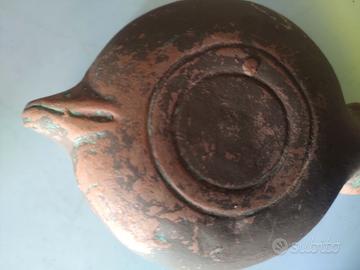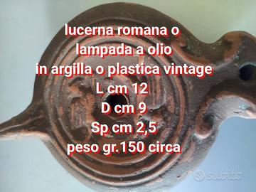 LANTERNA ROMANA CON RAFFIGURAZIONI O LAMPADA OLIO SOLO VINTAGE IN ARGILLA MOLTO BELLA CM 12 X 8,5