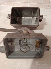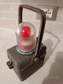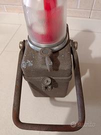 Questo oggetto è una lanterna d'epoca, simile ai modelli utilizzati nel ventesimo secolo per segnalazione o illuminazione di emergenza. Presenta una robusta cassa in metallo con una maniglia per il trasporto. Il corpo è dotato di una cupola in vetro trasparente che protegge una luce rossa interna. L'oggetto presenta segni di Vita.