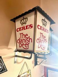 STUPENDE E RARE LANTERNE PUBBLICITARIE A LAMPIONE con pubblicità delle birre CERES DANISH BEER e PILS. Sono trifacciali.