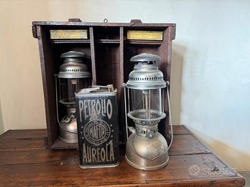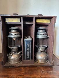 Vendo coppia lanterne a petrolio anni 30, in perfette condizioni. La scatola di legno era x portarle in giro in sicurezza al epoca