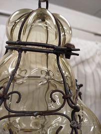 coppia di lanterne veneziane originali anni 60,in vetro soffiato..h 33cm x 22 larghezza
