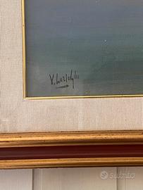Olio su tela rimantica marina campana opera di Vincenzo LARICCHIA pittore napoletano del ‘40 dimensioni 75x40