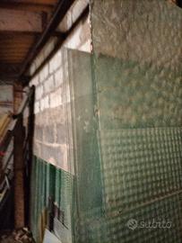 Lastre di vetro di diverse dimensioni come da foto con metro. Una ventina in vetro normale cm 40x176 ca.; altre in vetro decorato, altre colorate sempre decorate. Contattare per sopralluogo. Alcune in ottimo stato, altre danneggiate. Prezzo variabile e concordabile in base a quantità.